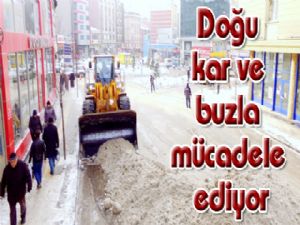 Erzurum Büyükşehir Belediyesinin karla mücadele ekipleri kentin bazı bölümlerinde karla mücadele çalışmalarını sürdürüyor. İş makineleri cadde ve sokaklarda biriken karı kaldırırken buzlu kısımlar da kazma ve küreklerle belediye personeli tarafından temizleniyor.