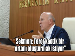 Erzurum Büyükşehir Belediye Başkanı Mehmet Sekmen, bölücü terör örgütünün Türkiye'de kaotik bir ortam oluşmasını istediğini, vatandaşların bu oyunlara gelmemesi gerektiğini ifade etti. Başkan Mehmet Sekmen, Erzurum Büyükşehir Belediye Meclisi'nde terör olayları ve ülke gündemini değerlendirdi. Başkan Sekmen, şunları söyledi: "Ordumuz ve emniyet teşkilatımız terörün kökünü kazımak adına iç güvenlik harekâtında etkin operasyonlar yaparak, vatan hainlerini yok etmektedir. Terör odaklarıyla böylesine mücadele yapılırken, bölücü örgütün şehir kadrosu da vilayetlerde provakatif eylemler gerçekleştirerek kardeşi kardeşe kırdırmak istemektedir. Terör ülkemizde kaotik bir ortam oluşturmak ve iç savaş çıkarmak istiyor. Bunlara asla izin vermemeliyiz. Birlik ve beraberlik içerisinde birbirimizle kenetlenmeli ve sağduyulu olmalıyız." Başkan Sekmen, terörün Türkiye'nin gelişmesini istemediğini ifade etti. Sekmen, "Şuanda Türkiye'nin dört bir sathında yapılan yatırımlar bir bir hayata geçiyor. Tüneller, yollar, altyapılar, sağlık ve eğitim tesisleri yapılıyor. Bütün bunlar yapılırken terör odakları bu ülkeyi kana bulamak istiyor. Terörü telin ediyorum. Bu vesileyle vatanımız ve milletimiz için canını kurşuna siper eden şehitlerimizi rahmetle anıyor, kederli ailelerimize başsağlığı diliyorum" dedi.