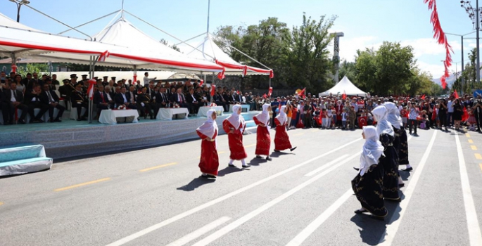 Halk oyunları ekiplerinin de sahne aldığı kutlama programı, geçit töreni ile son buldu.