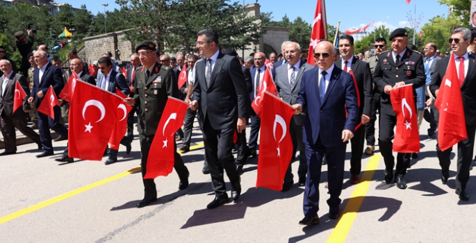 Aziziye Şehitlik Parkı'ndaki törende Atatürk'ü temsilen sporcu ve öğrencilerin taşıdığı Türk bayrağı ve Atatürk posteri, muharip ve malul gaziler eşliğinde Şehitlik Parkı'ndaki tören yerine getirildi ve protokol selamlandı.