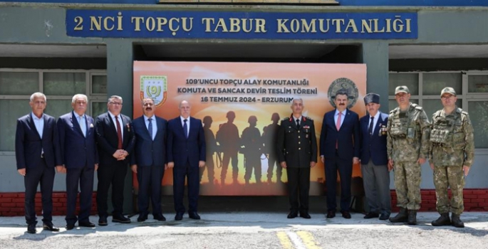 109’uncu Topçu Alay Komutanlığı Komuta ve Sancak Devir Teslim törenine; Erzurum Büyükşehir Belediye Başkanı Mehmet Sekmen, Palandöken Belediye Başkanı Muhammet Sunar, İl Emniyet Müdürü Kadir Yırtar, Erzurum Muharip Gaziler Derneği Başkanı Salih Mesci, ürkiye Harp Malulü Gaziler Şehit Dul ve Yetimleri Derneği Erzurum Şube Başkanı Recep Akgül, Türk Kızılay Erzurum Şube Başkanı Hüseyin Bozhalil ve davetliler katıldı.