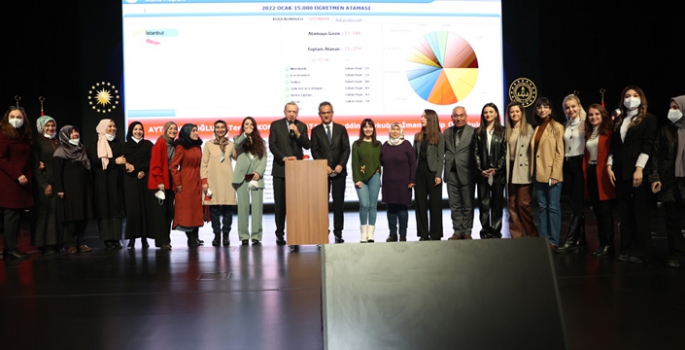 Kimi çevrelerin haksız, mesnetsiz, tamamen abartılı eleştirilerine rağmen öğrencilerle okulları arasına kimsenin, hiçbir bariyerin girmesine müsaade etmediklerini belirten Cumhurbaşkanı Erdoğan, “İnşallah her biriniz Anadolu'nun dört bir köşesinde birer eğitim neferi olarak yerinizi alacak, aziz milletimize hizmetlerin en ulvisini sunacaksınız. Atamasını gerçekleştireceğimiz her bir öğretmenimizi canı gönülden tebrik ediyor, öğretmenlik görevinin hayırlı olmasını diliyorum. Bugün ataması yapılacak 15 bin yeni öğretmenimizin de katılımıyla eğitim-öğretim ordumuzu daha da güçlendireceğiz. Böylece salgın sürecinde eğitim hizmetlerinin kesintisiz şekilde devam ettirilmesi noktasında ciddi bir avantaj elde edeceğiz. Evlatlarımızın eğitiminin kesintiye uğramaması konusundaki kararlılığımızı her fırsatta açıkça ifade ediyoruz. Öğretmenlerimizle öğrencilerinin bir daha ayrı kalmaması, çocuklarımızın okul ortamından uzaklaşmaması için her türlü çabayı gösteriyoruz. Hamdolsun 2021-2022 Eğitim Öğretim Yılının ilk dönemini salgına rağmen son derece başarılı bir şekilde tamamladık. Siz değerli öğretmenlerimizin gayretleri, velilerimizin aldığı tedbirler ve öğrencilerimizin kurallara uyması sayesinde okullarımızı açık tuttuk. Son 100 yılın en ciddi krizi olarak nitelenen bu salgın sürecinde elbette bazı sıkıntılarla, zorluklarla, hatta engellemelerle karşılaştık. Özellikle milletle ve milletin gündemi ile hiçbir bağı olmayan kimi çevrelerin haksız, mesnetsiz, tamamen abartılı eleştirilerine maruz kaldık. Sürekli karamsarlık aşılayarak, öğretmen ve öğrencilerimizin yüreklerine korku salarak bu süreci sabote etmeye çalıştılar. Hayal mahsulü bilgilerle, sosyal medya mecralarını da kullanarak insanımızı yanlış yönlendirmenin çabası içinde oldular. Devlet olarak evlatlarımızla okulları arasına kimsenin, hiçbir bariyerin girmesine müsaade etmedik. Salgının yol açtığı meşakkatlere rağmen eğitim faaliyetlerini ülke çapında kesintisiz sürdürebilen birkaç devletten biri olduk. Eğitimin tüm paydaşlarının aynı hedef etrafında kenetlenmesini sağlayarak, koordinasyonu artırarak, okul-veli işbirliğini güçlendirerek bu kritik dönemi hep birlikte alnımızın akıyla atlattık. Son 2 yıldır özveri ile çalışan öğretmenlerimizi, derslerine dört elle sarılan öğrencilerimizi, Milli Eğitim Bakanlığının tüm mensuplarını tebrik ediyorum. Yüz yüze eğitim konusundaki net duruşumuzun milletimiz tarafından da takdirle karşılandığını görüyoruz. Sizlerin çabaları ile eğitim-öğretim senemizin ikinci dönemini de kesintisiz bir şekilde tamamlayacağımıza inancım sonsuz. Tüm çocuklarımızın ve velilerimizin müsterih olmasını istiyorum” diye konuştu.