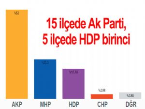 KESİN olmayan sonuçlara göre 15 ilçede AK Parti birinci çıkarken 5 ilçede ise HDP ipi göğüsledi. Karayazı, Tekman, Hınıs ve Karaçoban'da birinci olan HDP, Köprüköy'de de sürpriz yaparak birinci parti çıktı.