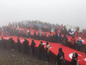 270 dağcı, 150 metrelik dev Türk Bayrağı ile zirveye yürüdü.