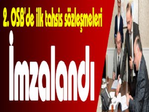 Erzurum 2. Organize Sanayi Bölgesi'nde, kura çekimi ile arsa yerleri belirlenen ve işlemlerini tamamlayan firmalarla arsa tahsis sözleşmeleri imzalanmaya başlandı.