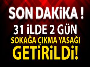 İçişleri Bakanlığından yapılan açıklamada, 10.04.2020 tarihi saat 24.00 ile 12.04.2020 tarihi saat 24.00 arasında Büyükşehir statüsündeki 30 ilimiz (Adana, Ankara, Antalya, Aydın, Balıkesir, Bursa, Denizli, Diyarbakır, Erzurum, Eskişehir, Gaziantep, Hatay, İstanbul, İzmir, Kahramanmaraş, Kayseri, Kocaeli, Konya, Malatya, Manisa, Mardin, Mersin, Muğla, Ordu, Sakarya, Samsun, Şanlıurfa, Tekirdağ, Trabzon, Van) ile Zonguldak il sınırları içinde bulunan tüm vatandaşlarımızın sokağa çıkmaları yasaklanmıştır denildi. Açıklamada, Saat 22.15 itibariyle valiliklere gönderilen genelgenin tüm detayları kamuoyu ile paylaşılacaktır ifadesine yer verildi.(iha)