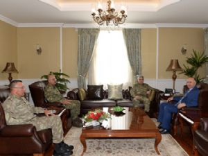 Erzincan'dan Erzurum'a gelerek askeri birlikleri denetleyen 3.Ordu Komutanı Orgeneral İsmail Serdar Savaş, denetimlerin ardından Vali Azizoğlu'nu makamında ziyaret etti. Valilik defterini imzalayan Orgeneral İsmail Serdar Savaş, bir süre Vali Azizoğlu'yla sohbet etti.