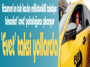 Referanduma 2 gün kala Erzurum'da çalışmalarını sürdüren AK Parti Erzurum Milletvekili Zehra Taşkesenlioğlu, halkın nabzını en iyi tutan taksicilere özenerek direksiyona geçti. Şoförü olduğu taksiye binecek olan müşterilere 'Evet'i anlatacak olan kadın vekil, iki gün boyunca kent merkezinde direksiyon sallayacak. Müşterilere para almadan hizmet verecek olan Erzurum'un tek kadın milletvekili, "Bu taksiye binen herkes inşallah evet yolculuğuna çıkacak" diyerek yolları mesken tuttu.
