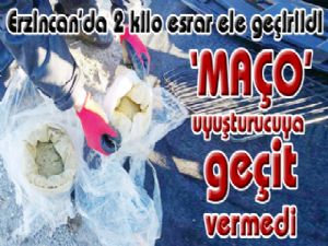 Erzincan'da yapılan yol uygulamasında narkotik dedektör köpeği 'Maço'nun da yardımıyla bir araçta yapılan aramada 2 kilo 204 gram esrar ele geçirildi.
