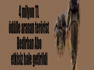 Kırmızı kategoride 4 milyon TL ödülle aranan Masiro kod adlı terörist Bedirhan Abo etkisiz hale getirildi(iha)