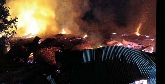Soğutma çalışmalarının devam ettiği yangında evler, ahır ve bazı samanlıklar kullanılamaz hale geldi.