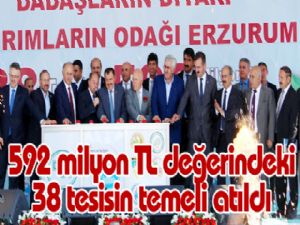 Erzurum'da Başbakan Yardımcısı Recep Akdağ ile Orman ve Su İşleri Bakanı Veysel Eroğlu'nun katılımıyla 592 milyon TL değerindeki 38 tesisin temeli atıldı.
