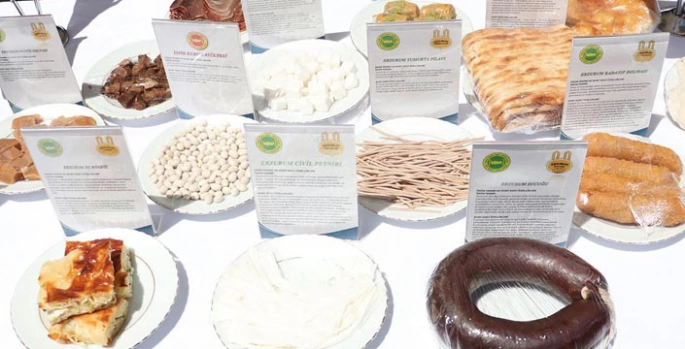Erzurum’dan coğrafi işaret almak için TÜRKPATENT’e yapılan ve halen değerlendirme aşamasında olan 22 ürün şöyle sıralandı. Erzurum Ayak Paça Çorbası, Erzurum Etli Pazı Dolması, Erzurum Göğermiş Peynirli Pide, Erzurum Sinisi, Erzurum Tava Ketesi, Erzurum Olur Kekikli Mahallesi Kandirif Peyniri / Erzurum Kandirif Peyniri, Hınıs Domas Peyniri, Hınıs Kekik Balı, Pasinler Balı, Erzurum Karın Kaymağı Peyniri, Hasankale Dövme Kebap, Hasankale Etli Ekmek, Hasankale Güveci, Pasinler Köfte, Erzurum Geven Balı, Erzurum Kelecoş, Erzurum Kaşar Peyniri, Narman Yeşil Mercimeği, Erzurum Kahvaltısı, Erzurum Un Helvası, Karayazı Balı ve Erzurum İspir Gobdini.