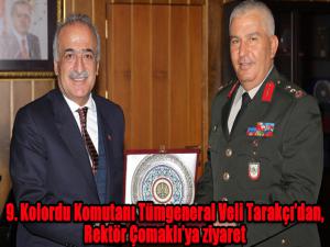9. Kolordu Komutanı Tarakçıya Atatürk Üniversitesinin Yeni Nesil Üniversite Tasarım ve Dönüşüm Projesi hakkında bilgi veren Rektör Çomaklı, üniversitenin Erzurum halkına hizmet eden güzide kurumlardan biri olduğuna işaret etti.