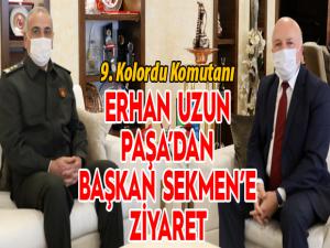 Başkan Mehmet Sekmenin makamda ağırladığı 9. Kolordu Komutanı Uzun, yeni görevini Erzurum gibi tarihe mal olmuş bir şehirde ifa ediyor olmanın kendisi için büyük bir mutluluk olduğunu ifade etti. Başkan Sekmen de, Erzuruma dair bir süre sohbet ettiği özel konuğuna Büyükşehir Belediyesinin çalışmaları hakkında bilgiler de aktardı.