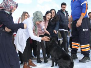 Birimleri tek tek gezerek çalışmaları hakkında bilgi edinen Hemşirelik Fakültesi öğrencileri en büyük ilgiyi arama ve kurtarma köpeklerinden Arya'ya gösterdiler.