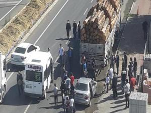 Ağaç yüklü kamyon, kimliği belirlenemeyen şoför idaresinde ki yolcuları taşıyan 36 M 9010 plakalı minibüse çarptı.