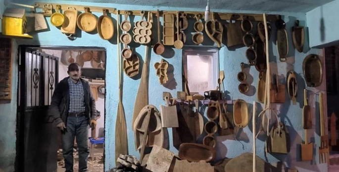 Erzurum'un Tortum ilçesine bağlı Alapınar Mahallesi'nde yaşayan Aşur Taş, ahşap oyma sanatıyla bölgenin kültürel mirasını yaşatıyor.