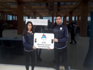 Ağrı İbrahim Çeçen Üniversitesi Sağlık Kültür Spor Daire Başkanı Mehmet Fatih Karaoğlan ile Şampiyon öğrenci Abdulkadir Aslan, antrenör Hüseyin Oflaz ve Kick Boks şampiyonasında bayanlar kategorisinde üniversiteyi temsil eden Ağrı İbrahim Çeçen Üniversitesi BESYO öğrencisi Tuğba Çolo'yu makamında kabul eden AİÇÜ Rektörü Prof. Dr. Abdulhalik Karabulut, Ağrı'yı ve Üniversiteyi başarıyla temsil eden öğrencileri ve antrenörlerini tebrik etti. Abdulkadir Aslan'ın ileride kendi branşında daha önemli yerlere geleceğine inandığını ifade eden Rektör Prof. Dr. Karabulut, Ağrı İbrahim Çeçen Üniversitesi olarak tüm sporcularımızın yanlarında olduklarını ve desteklemeye devam edeceklerini sözlerine ekledi.(iha)