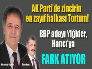 Cumhur İttifakı gereği Tortum'da belediye başkanlığı yarışına AK Parti adayı Ömer Hancı girdi. Ancak şu ana kadar ortaya çıkan tabloya göre, AK Parti'nin Erzurum genelinde zayıf olduğu ilçelerden biri olarak Tortum gösteriliyor. Çünkü Tortum'da daha önce Serdarlı Belediye Başkanlığı yapan ve bir dönem de Tortum'da bağımsız aday olup çok ciddi oy alan Muammer Yiğider Büyük Birlik Partisinden (BBP) aday gösterildi.