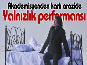 Atatürk Üniversitesi Güzel Sanatlar Fakültesi Resim Bölüm Başkanı Prof. Mehmet Kavukcu, mülteci sorunu ve yerinden yurdundan edilen insanları yalnızlık performansıyla anlattı.