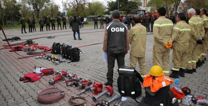 Eğitimlere yangın işçilerinin yanı sıra teknik personel, arazöz sürücüleri ve işletme müdürleri katılırken, eğitim alanları askeri kışlayı aratmadı.