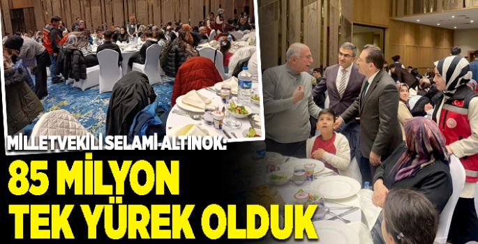 Altınok, sözlerini şöyle sürdürdü: “İftar programımıza emeği geçen başta gönüllü anneler grubu olmak üzere, bütün kardeşlerimi tebrik ediyorum, katkısı olan iş adamlarımıza Büyükşehir Belediyemize, üniversitelerimize, kim varsa teşekkür ediyorum. Bu iftar neyi gösteriyor şunu gösteriyor, 780bin kilo metre karede 85 milyon insan acıyı da tatlıyı da, sıkıntıyı da mutluluğu da birlikte yaşama şuuruna, duygusuna saygı gösteriyor. Çok acılar yaşadık çok büyük yıkım oldu, 14 milyon vatandaşın sıkıntısı oldu, 11 şehrimiz yıkıldı. Ama eminim sizlerde izliyorsunuzdur, sayın cumhurbaşkanımız şu anda büyük bir ihtimalle bir vilayette iftarda, O Recep Tayyip Erdoğan, onun sözü Recep Tayyip Erdoğan sözü. Söz verdi mi yapar. Allah'ın izniyle bir yıl içerisinde yuvası yıkılan bütün kardeşlerimize yeni yuva yapacağız. Sıkıntıya giren bütün kardeşlerimizin sıkıntısını gidereceğiz. 85 milyon insanımızın kardeşlik hukukunu gözeteceğiz."