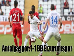 İlk yarıda Mevlüt Erdinç'in golüyle öne geçen ev sahibi Antalyaspor'a, ikinci yarıda Sunu'nun penaltıdan attığı golle cevap veren konuk BB Erzurumspor puanları paylaştı.