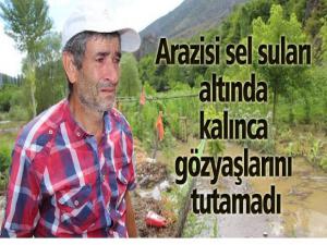 Erzurum'da dün etkili olan sağanak yağış sonrası dereler taştı ve ekili araziler sular altında kaldı. Bir çiftçi ise ekili arazisini sular altında görünce gözyaşlarına hakim olamadı.