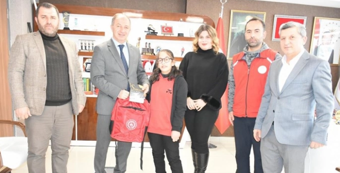 ‘Asımın Nesli’ Öyküsü ile derece yapan genç öğrenciyi Gençlik ve Spor İl Müdürü Levent Çakmur ödüllendirdi.