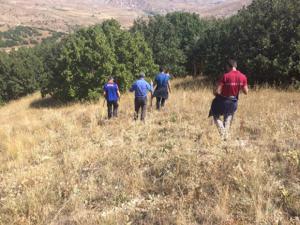 İz takip köpeklerinin de kullanıldığı aramalarda ekipler, "drone" desteğiyle arazideki çalışmalarını sürdürüyor.