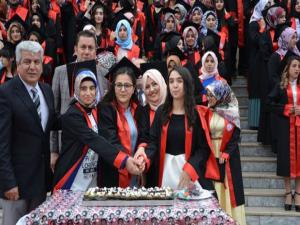 Heyecanın zirve yaptığı anlarda pasta kesimi gerçekleşirken mezun olan öğrenciler keplerini havaya attılar.
