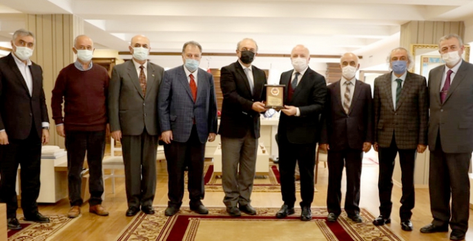 Erdal Güzel başkanlığındaki Prof. Dr. Erol Kürkçüoğlu, Prof. Dr. Ömer Özden, Gazeteci- Yazar Kadir Sabuncuoğlu, emekli Albay Sabri Topdağı, emekli Eğitimciler Abdurahman Zeynel ve Hami Akbaba’dan oluşan Erzurum Kalkınma Vakfı (ERVAK) üyeleri, Büyükşehir Belediye Başkanı Mehmet Sekmen’i ziyaret etti.