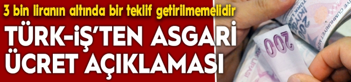 Türk-İş Genel Başkanı Ergün Atalay, yeni yılda geçerli olacak asgari ücret rakamı için, "İşveren ve hükümet, asgari ücretle ilgili 3 bin liranın altında bir teklif getirmemelidir. Çünkü 3 bin liranın altındaki teklif, insanları mutlu edecek bir teklif olmaz, çalışanları mutlu edecek bir teklif olmaz. Asgari Ücret Tespit Komisyonu'na 3 bin liranın üzerinde bir teklif getirilmelidir" ifadelerini kullandı.