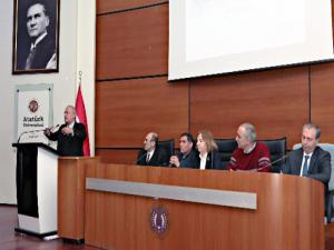 Atatürk Üniversitesi Kültür Merkezi Mavi Salonda düzenlenen toplantıya Rektör Prof. Dr. Ömer Çomaklı, rektör yardımcıları, fakülte dekanları, birim yöneticileri ve akademisyenler katıldı.