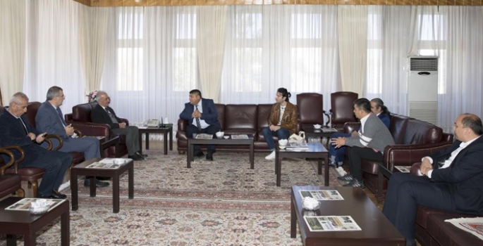 Atatürk Üniversitesi Güzel Sanatlar Fakültesi Sahne Sanatları Bölümümü ile lisans ve lisans üstü eğitim öğretim paydaşlığı ve öğretim elemanı gereksinimleri hususunda görüşmeler gerçekleştirmek ve protokol imzalamak üzere Atatürk Üniversitesine gelen Özbekistan Devlet Sanat ve Medeniyet Üniversitesi Rektör Yardımcısı Prof. Dr. Abdülaziz Nurullayev, Rektör Prof. Dr. Ömer Çomaklı’yı ziyaret etti.