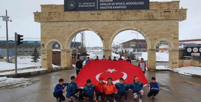 Erzurum'un Düşman İşgalinden Kurtuluşunun 104. yıl dönümü nedeniyle düzenlenen atletizm yarışlarında sporcular Dev Türk Bayrağı ile koştu. Atletlerimizin bu hareketi vatandaşlardan yoğun alkış aldı.