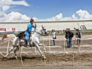 Erzurum'da düzenlenen 2016 Türkiye Atlı Okçuluk Şampiyonası yarı finalinde dörtnala giden atların üzerinden hedeflere ok atan sporcular adeta nefes kesti.
