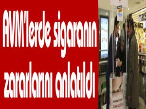 AVM'lere gelen vatandaşlar sigaranın zararlarının anlatıldığı standa yoğun ilgi gösterdi.