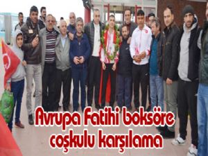 Avrupa ikincisi olan Erzurumlu Boksör için havalimanında karşılama töreni yapıldı.