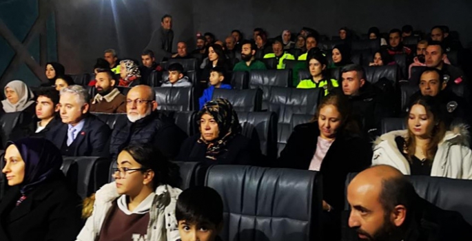 Erzurum İl Emniyet Müdürlüğü tarafından düzenlenen etkinlik çerçevesinde bir alışveriş merkezinin sinema salonunda filmi izleyen şehit yakınları ve gazilerin duygulandığı gözlendi.