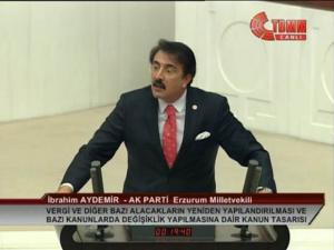 AK Parti Erzurum Milletvekili İbrahim Aydemir, Vergi ve Diğer Bazı Alacakların Yeniden Yapılandırılmasına ile Bazı Kanunlarda Değişiklik Yapılmasına İlişkin Kanun Tasarısı üzerinde TBMM Genel Kurulunda AK Parti Grubu adına tespitleri paylaştı. Aydemir, konuşmasında Dadaşların Aşkaleden Yakutiyeye kadar Cumhurbaşkanı Recep Tayyip Erdoğana şükran hissi beslediği ve onunla 2023le yürümekte kararlı olduklarını vurguladı.