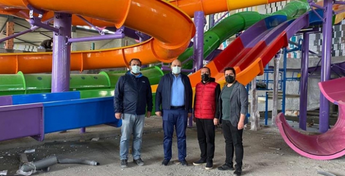 Termal Aqua Park’ın yapım çalışmalarını inceleyen ve son durumu Tamer Grup girişimcileriyle değerlendiren Başkan Orhan, montaj çalışmalarının son hızla devam ettiği parkı karış karış gezdi.