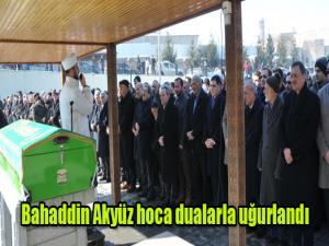Cenaze Namazını merhum Bahaddin Akyüz Hocanın kardeşi Cemalettin Akyüz Hoca kıldırdı. Bahaddin Akyüz Hoca, öğlen Namazının ardından kılınan cenaze namazından sonra Abdurrahman Gazi Mezarlığında toprağa verildi.
