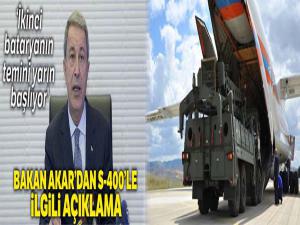 Türkiye'nin aldığı füze ve hava tehdidine dikkat çeken Bakan Akar, bunu engellemek, milleti korumak için yapılan yoğun çalışmaları anımsattı. Çalışmalar kapsamında, Türkiye'nin belirlediği kriterlere uygun cevap veren Rusya ile uzun menzilli bölge hava ve füze savunma sistemi temini için anlaşmaya varıldığını bildiren Bakan Akar, 12 Temmuz'da S-400 tedarik çalışmaları başladı. Bu çerçevede yapılan çalışmalar devam ediyor. Birinci batarya geldi. İkinci bataryanın temini için de yarından yani 27 Ağustos'tan itibaren intikaller, taşıma faaliyetleri başlayacak. Amacımız ülkemizin ve milletimizin dışarıdan gelecek hava ve füze tehdidine karşı korunması ve kollanmasıdır ifadelerini kullandı.