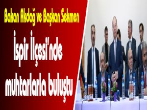 İlçede yoğun ilgi gören Bakan Prof. Dr. Akdağ, burada yaptığı konuşmada, mahalli idarelerin yapı taşı olan muhtarların yerel yönetimdeki önemine dikkati çekti. Bakan Akdağ, Başkan Mehmet Sekmen'in şehrin bütün ilçelerinde olduğu gibi İspir'in gelişimine de yoğun gayret gösterdiğini hatırlattı.