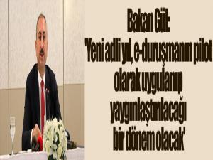 "Yargı reformu birinci paketinde düzenlenen seri muhakeme ve basit yargılama usullerinin yargısal işleyişteki yerini tam manasıyla bu dönemde önem verilen konulardan biri olacaktır. Adliye teşkilatımızın insan kaynağını nitelik ve nicelik yönünden her geçen gün geliştiriyoruz. Yeni adli yılda yeni infaz hakimliği uygulamasını hayata geçiriyoruz. Yargı reformu kapsamında mevzuatımıza kazandırılan 7242 sayılı Kanun ile infaz hakimliği kurumu yeniden ele alınmış, infaz hakimliklerinin yetkileri genişletilmiş ve bir ihtisaslaşma adımı olarak bu kurum, adliye teşkilatımızda müstakil bir şekilde yapılandırılmıştır. Yeni adli yılla birlikte Cumhuriyet savcılarımızın asliye ceza duruşmalarına katılmaları yeniden sağlanarak iddia-savunma diyalektiğinin daha etkin bir şekilde işlemesinin önü açılacaktır. Yeni adli yıl, test süreci başarıyla devam eden e-duruşmanın pilot olarak uygulandığı ve yaygınlaştırılarak tüm uygulayıcıların hizmetine açılacağı bir dönem de olacaktır. Bütün bu reform adımlarının temelindeki amacımız vatandaşımızın memnuniyeti, adalet hizmetlerinin milletimizin layık olduğu yüksek standartlarda sunulmasıdır."