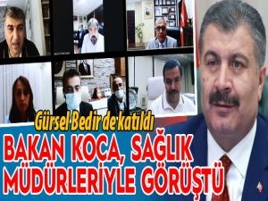 Bakan Koca, sosyal medya hesabından yaptığı paylaşımda, Ankara, Denizli, Adıyaman, Bursa, Malatya ve Erzurum il sağlık müdürlerimizle ayrı ayrı video konferans görüşmeleri gerçekleştirdik. Bu 6 kentimizde, salgına karşı gelinen son noktayı, hastanelerimizdeki yatak doluluk oranlarını ve filyasyon çalışmalarını ele aldık ifadelerine yer verdi.