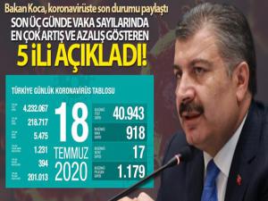 Sağlık Bakanlığından yapılan açıklamaya göre, son 24 saatte 17 kişi korona virüsten hayatını kaybetti, toplam can kaybı ise 5 bin 475'e yükseldi. Bugün toplam 40 bin 943 test yapılırken, 918 yeni vaka tanısı konuldu, toplam vaka sayısı ise 218 bin 717 oldu.