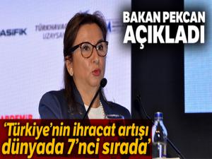 İhracat ana planında 17 hedef ülkeyi seçtiklerini dile getiren Bakan Pekcan, "Bu ülkeleri seçerken dünya gayrisafi hasılasından yüzde 60 pay alan, dünya ithalatından yüzde 43,7 pay alan, bizim ihracatımızda yüzde 25 payı olan ve 4.2 milyar nüfusu olan ülkeleri seçtik. Hedef sektörleri seçerken de dünyada küresel ticareti artan paya sahip olan, orta ve yüksek teknolojili ürünleri kapsayan sektörleri hedef aldık. Bu sektörlerdeki ihracatımızı binde 7.6'dan yüzde 1'e çekmeyi hedefledik" açıklamasında bulundu.